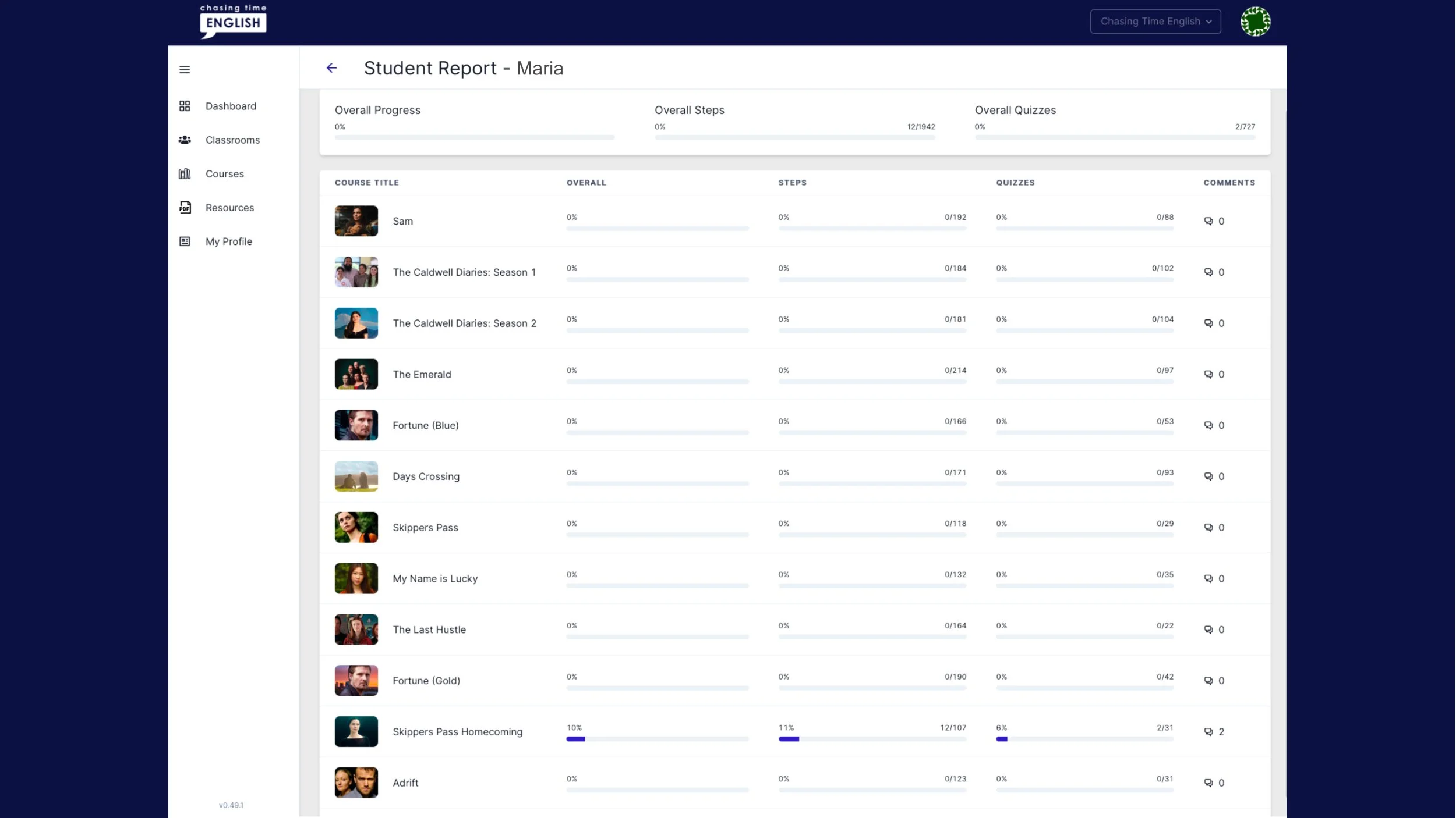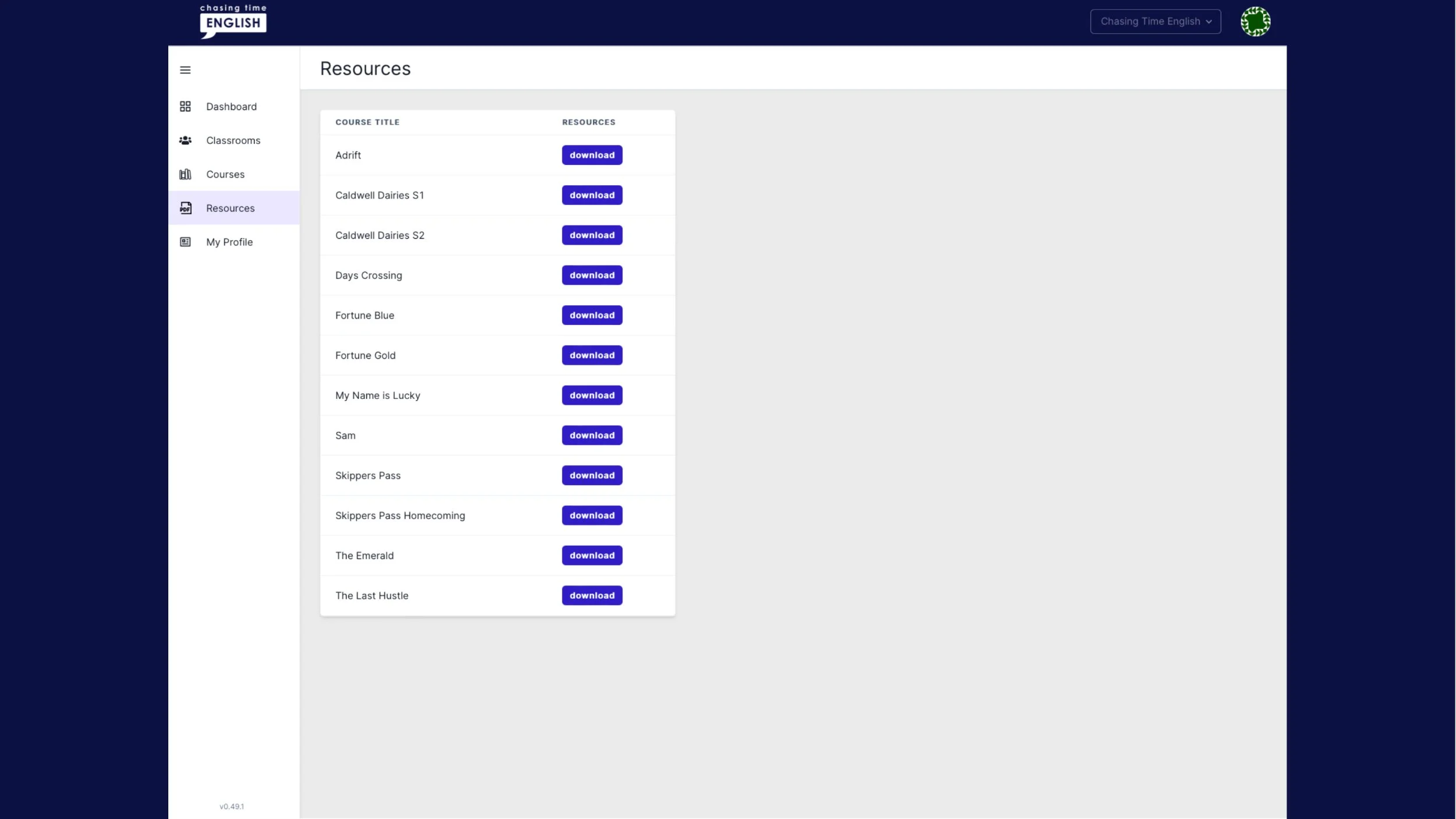 Sign in with your email address and password at: admin.chasingtimeenglish.com