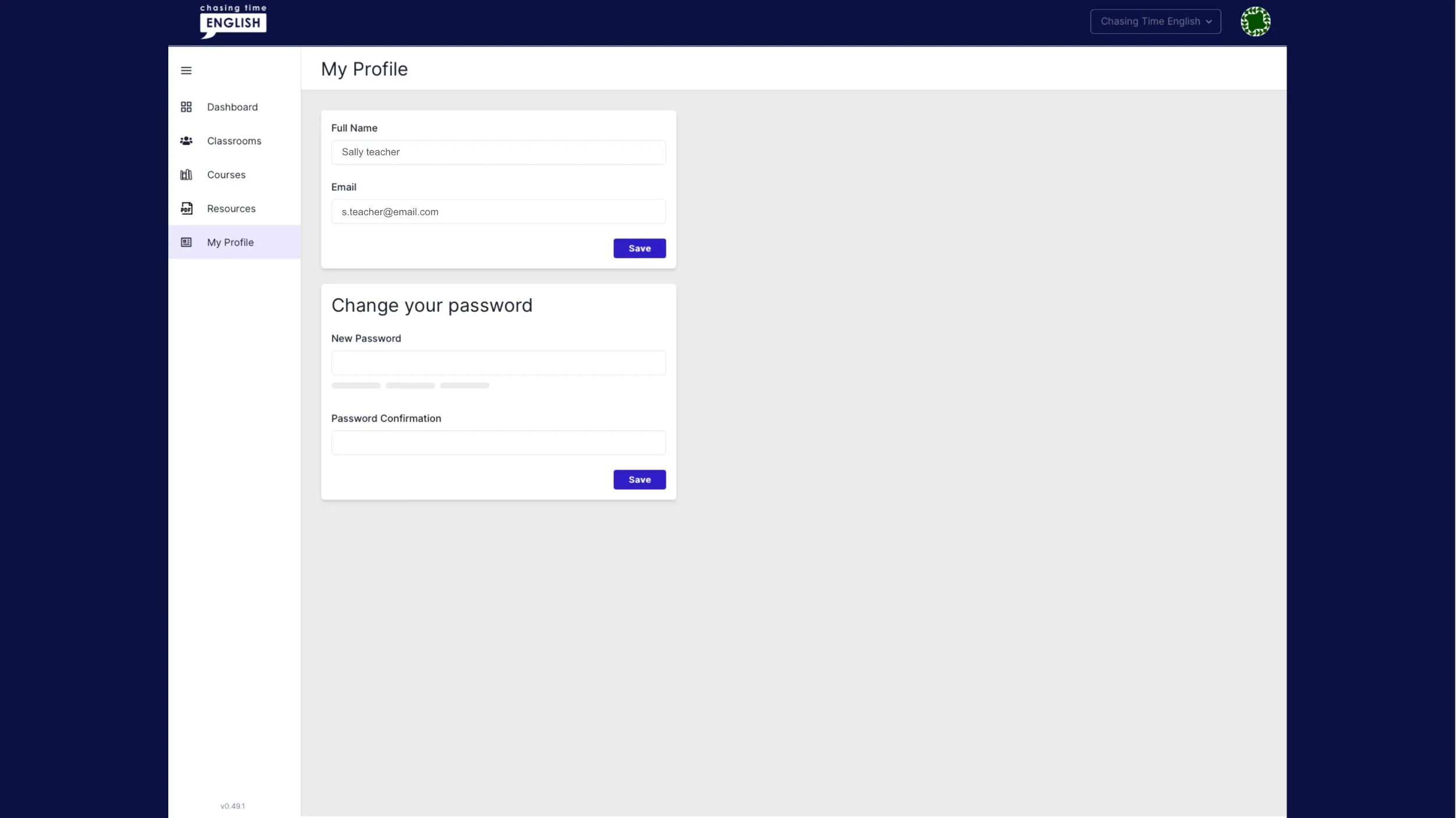 11. The My Profile tab is where you can change the name, email and password for individual teachers.