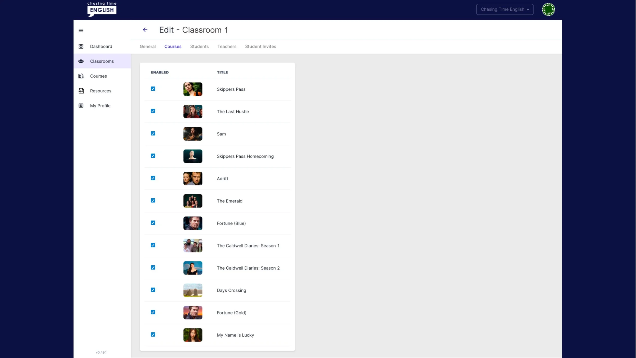 5. The Courses tab allows you choose the drama series you want to make available for your learners.