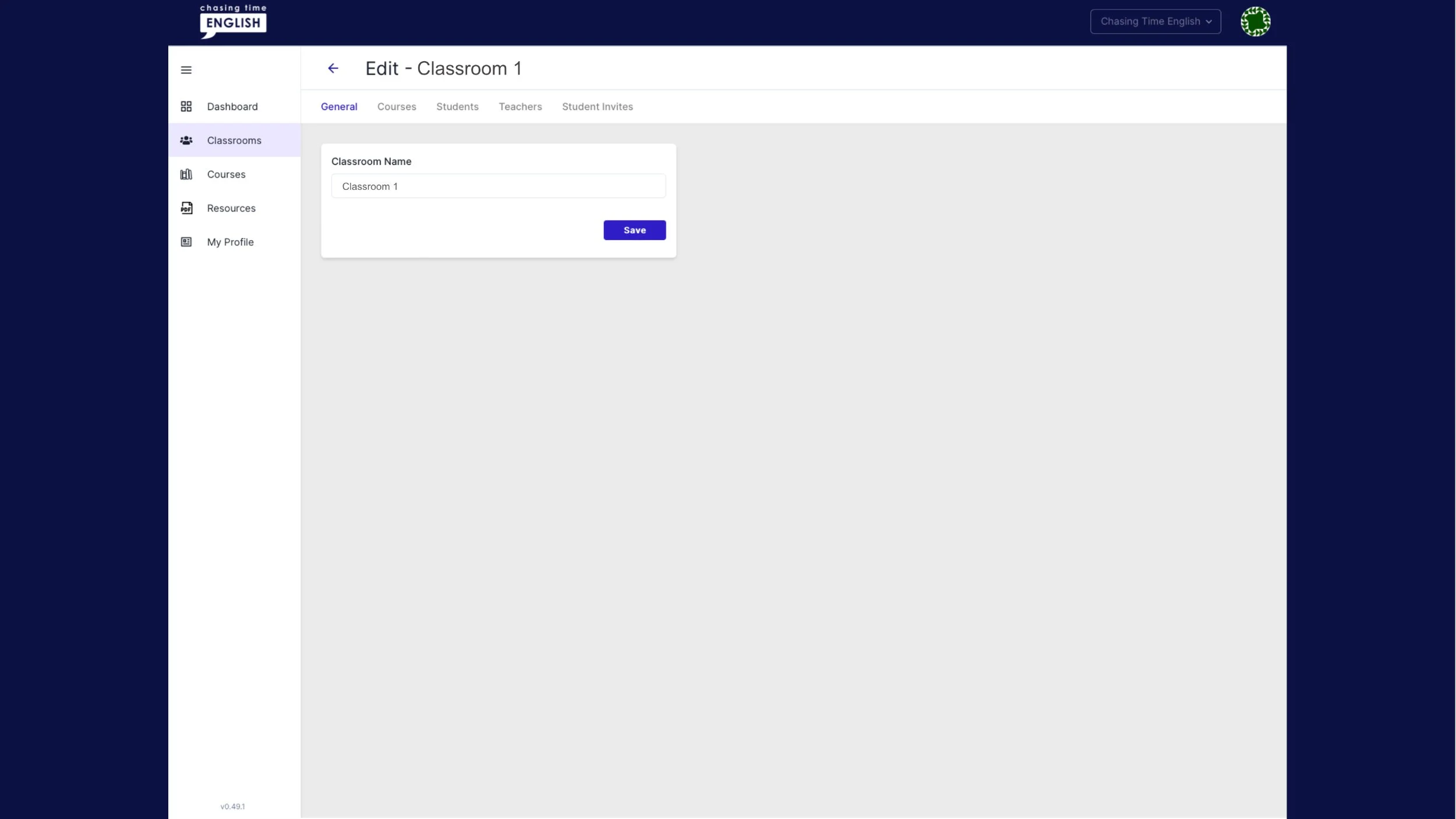 4. The General tab allows you to edit the name of the classroom. Click Save to safely update your progress.